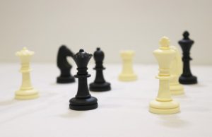Conjunto de peças de plástico ideais para o ensino do xadrez em ambiente escolar ou para a prática lúdica.